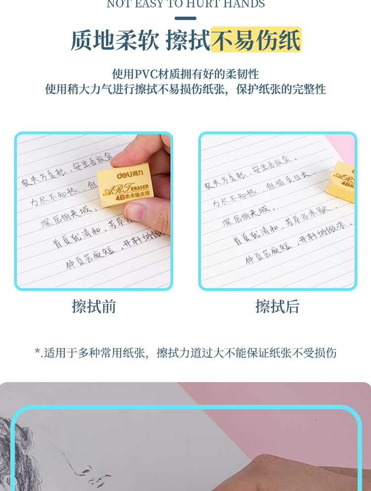 得力 deli 黄色绘画4B200A美术橡皮擦 7540