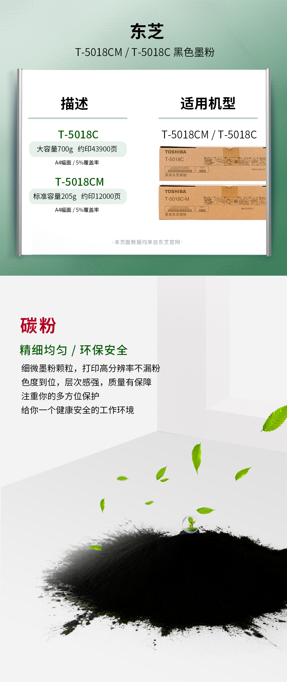 粉盒 东芝(TOSHIBA)T-5018C原装碳粉墨粉盒 适用于2518/2618/3018/3518A等 黑色高容5018C(700g,43900页)