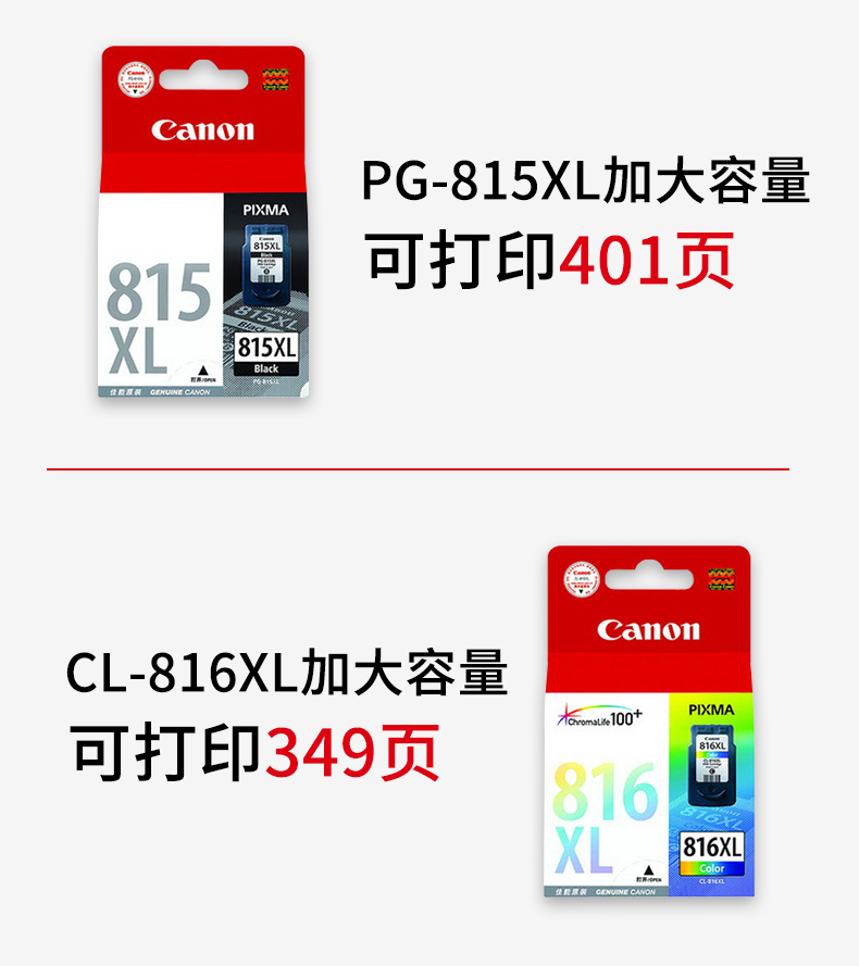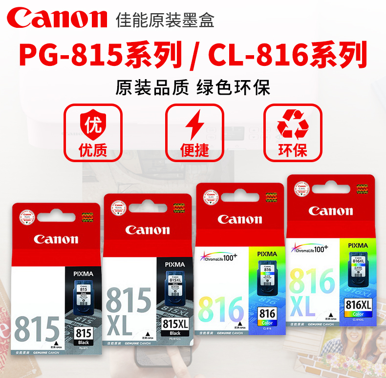 喷墨盒 原装佳能canon 喷墨盒黑色彩色 适用于mp288 mp236 mp259 ip2780打印机墨水盒 815黑色标准容量 9ML/220页