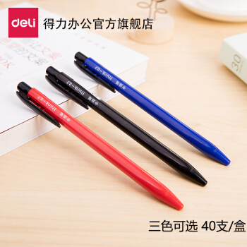 书写用笔类用具 得力 deli 0.7mm蓝色按动圆珠笔中油笔 新升级圆珠笔 40支装S303