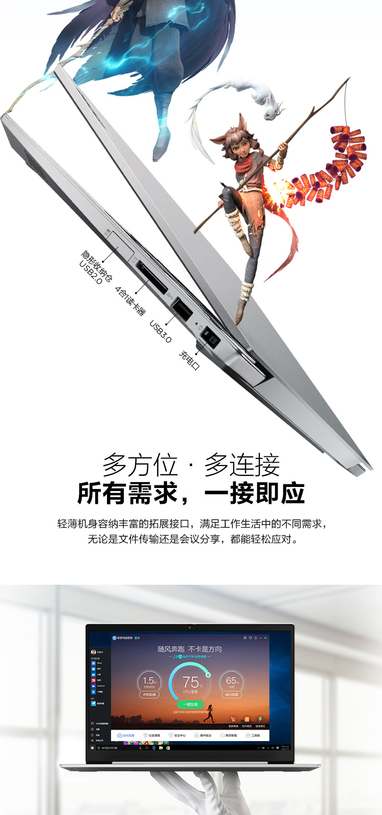 便携式计算机 联T想hinkBook 14 酷睿版 商务学生笔记本电脑14-09CD 配置: i5-1035G1 8G 512G 32G傲腾 2G独显
