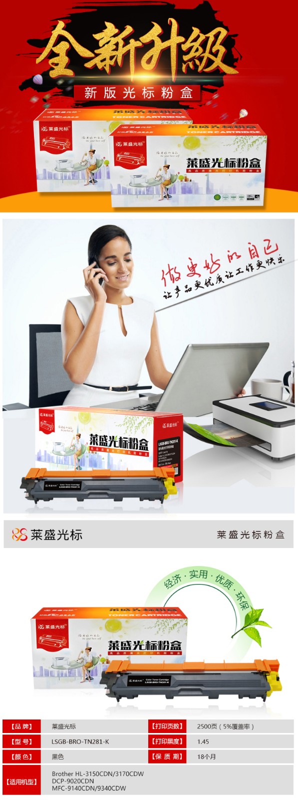 莱盛光标LSGB-BRO-TN281-K 黑粉盒 莱盛兄弟HL-3150CDN/3170CDW/DCP-9020CDN/MFC-9140CDN/9340CDW