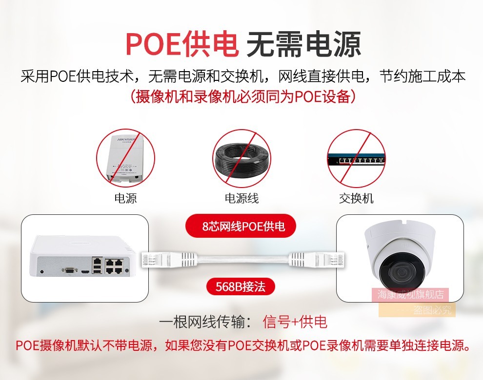 监控摄像机 海康威视(HIKVISION)网络监控摄像头红外夜视室内半球摄像机带POE DS-IPC-T13H2-I(300万拾音) 4MM焦距