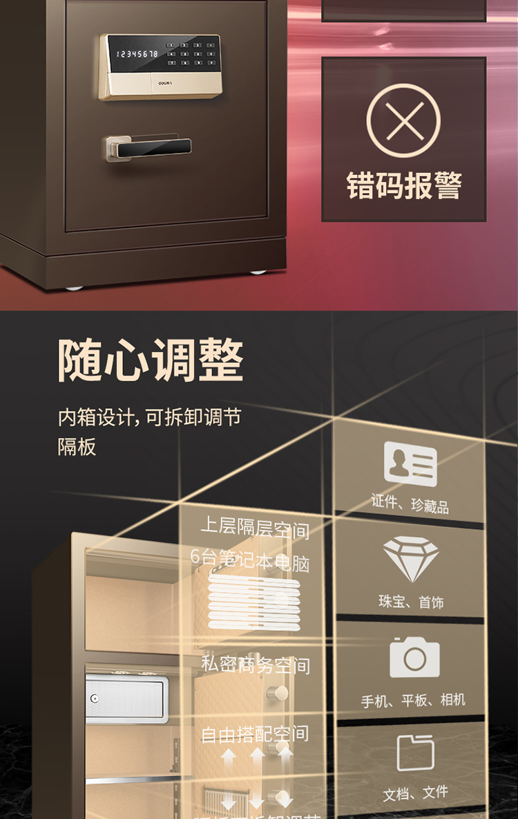得力 deli 保险柜 高80cm双门双层电子密码保险箱 家用办公保管柜保密柜 镇山虎33033