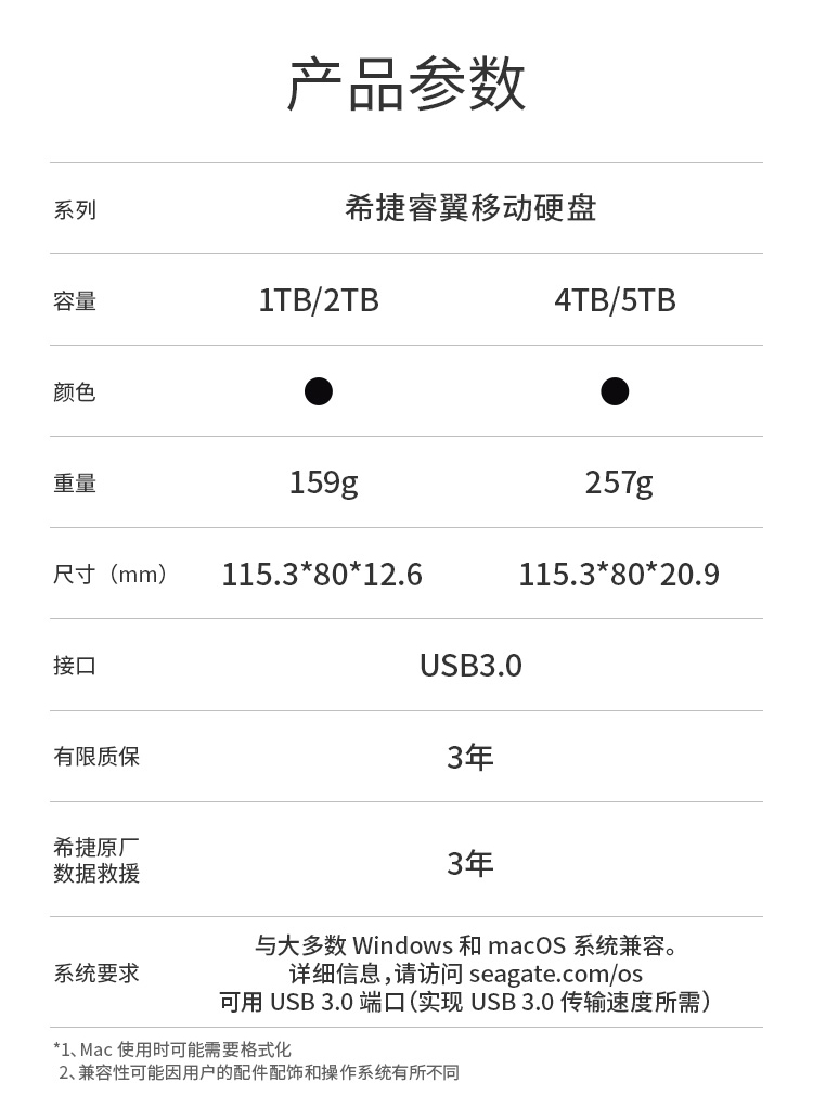 希捷(Seagate)移动硬盘1TB USB3.0 睿翼 2.5英寸 黑色便携商务 兼容MAC