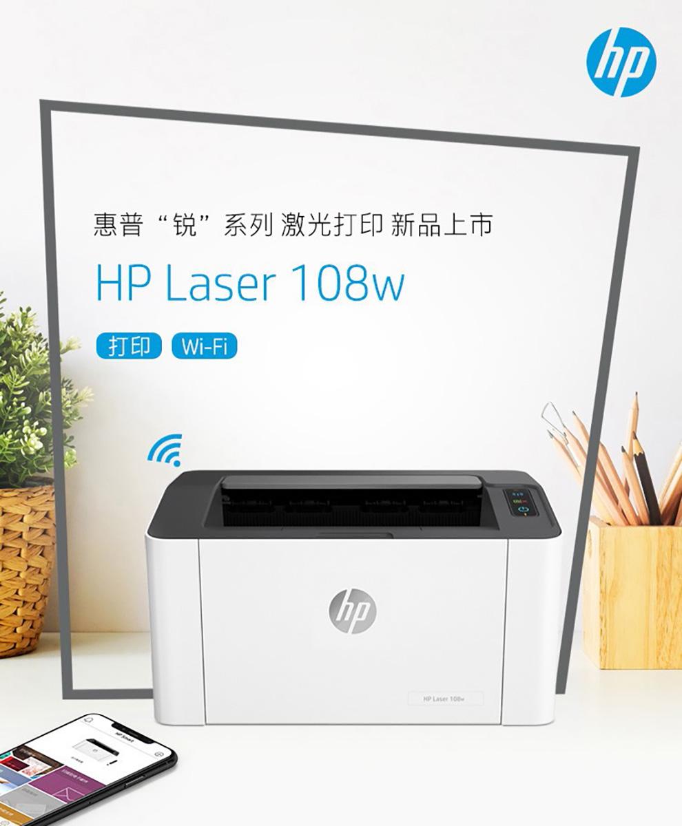 惠普 打印机P1108/208dw/108w/2506dw A4黑白激光打印机家用办公商用 108W只能打印+无线 手机无线打印推荐208dw
