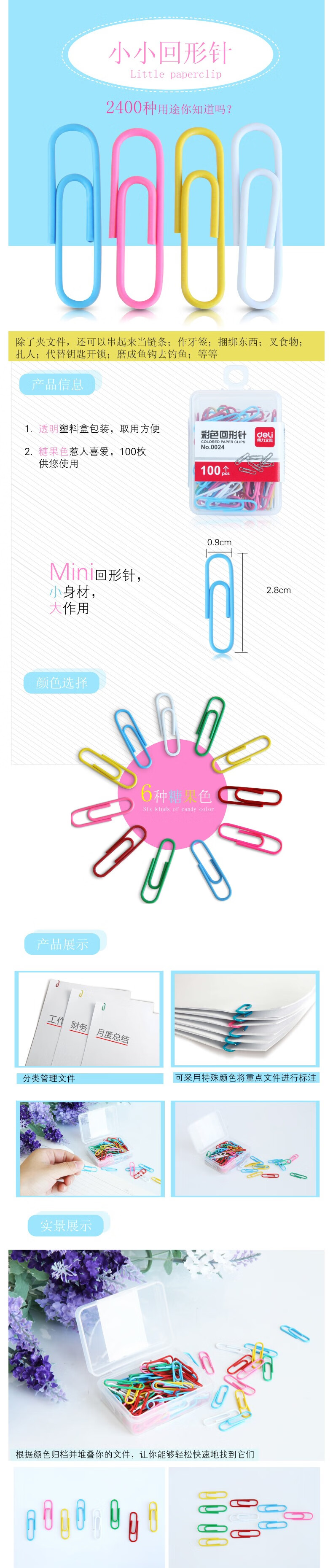 得力 0024 彩色 回形针 曲别针 装订及打孔类 单盒价格