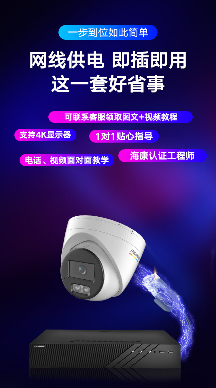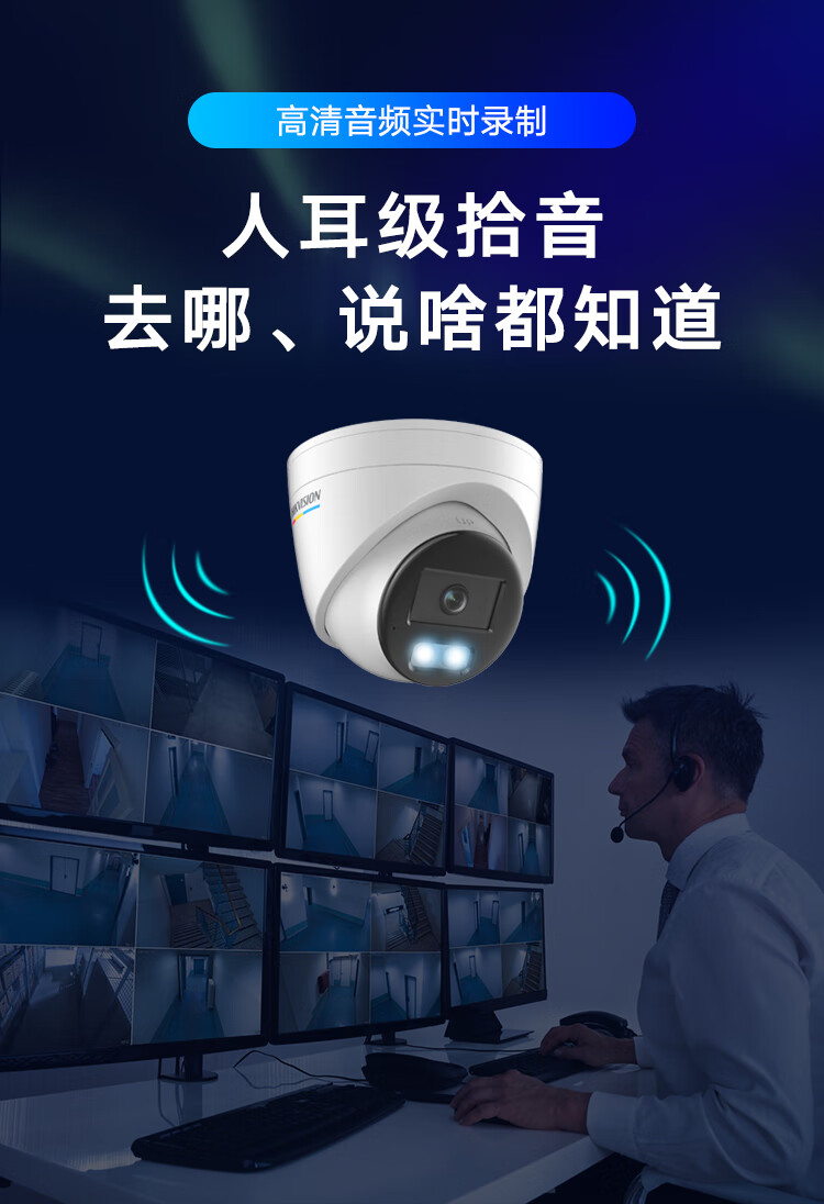 海康威视/HIKVISION 3347WDV3-L 监控摄像机 网络监控摄像头 400万超高清公司室内室外手机远程全彩户外监控器POE半球 2.8MM
