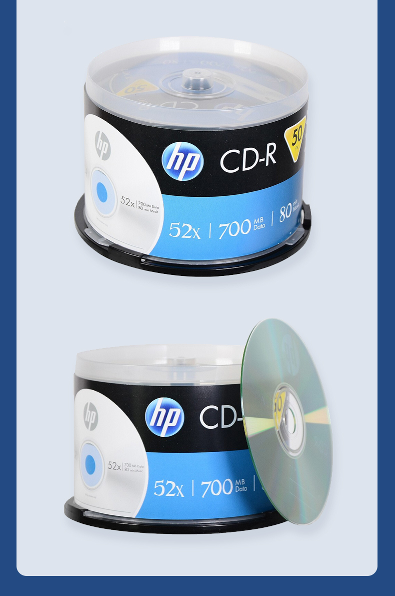 惠普(HP) CD-R 光盘库 刻录盘 52速700MB 桶装50片 空白光盘