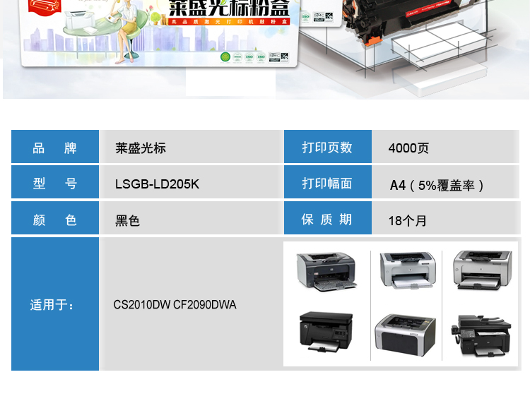 莱盛 光标LSGB-LD205K黑色粉盒适用联想 CS2010DW CF2090DWA 黑色