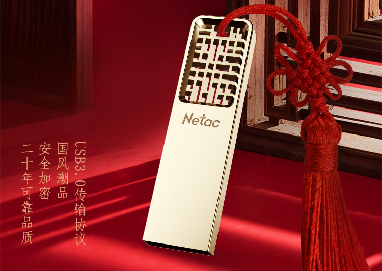 朗科(Netac)64GB USB3.0 U盘 U327 全金属高速迷你镂空设计闪存盘 创意中国风 珍镍色