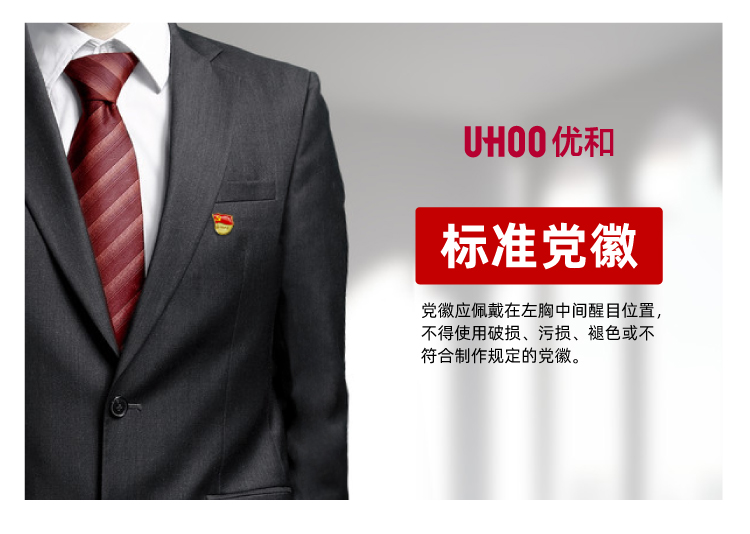优和(UHOO)标准党徽胸章 别针磁扣蝴蝶扣为人民服务党员徽章 蝴蝶扣装厚2mm 0231