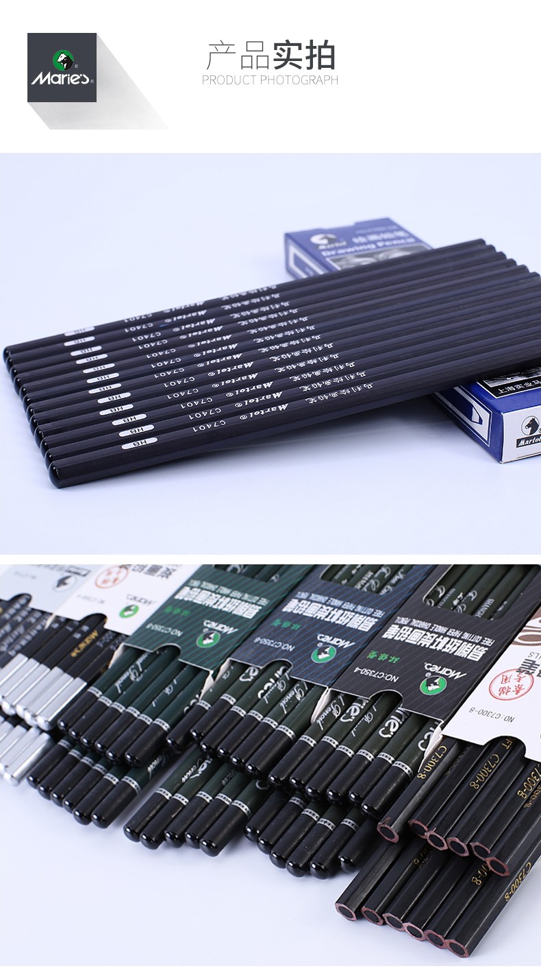 炭笔绘画素描铅笔碳笔软中硬美术生速写铅笔软性碳铅画笔2B4B绘图铅笔盒装套装 C7300-4炭铅(中性)