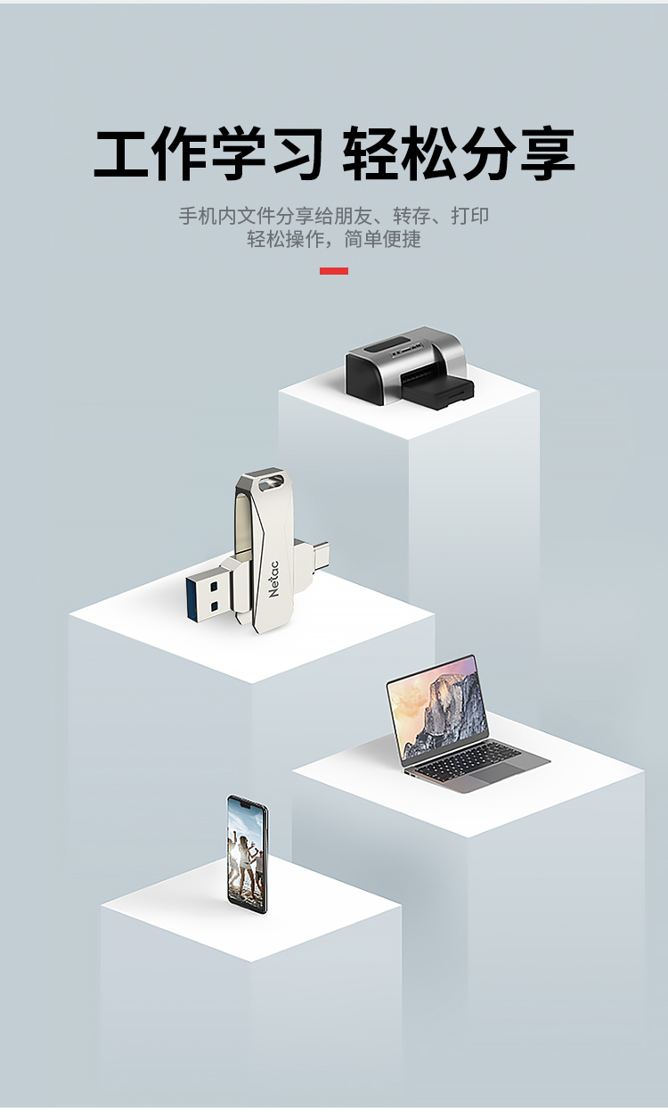 朗科(Netac)64GB Type-C USB3.0 手机U盘 U782C 银色 双接口手机电脑用