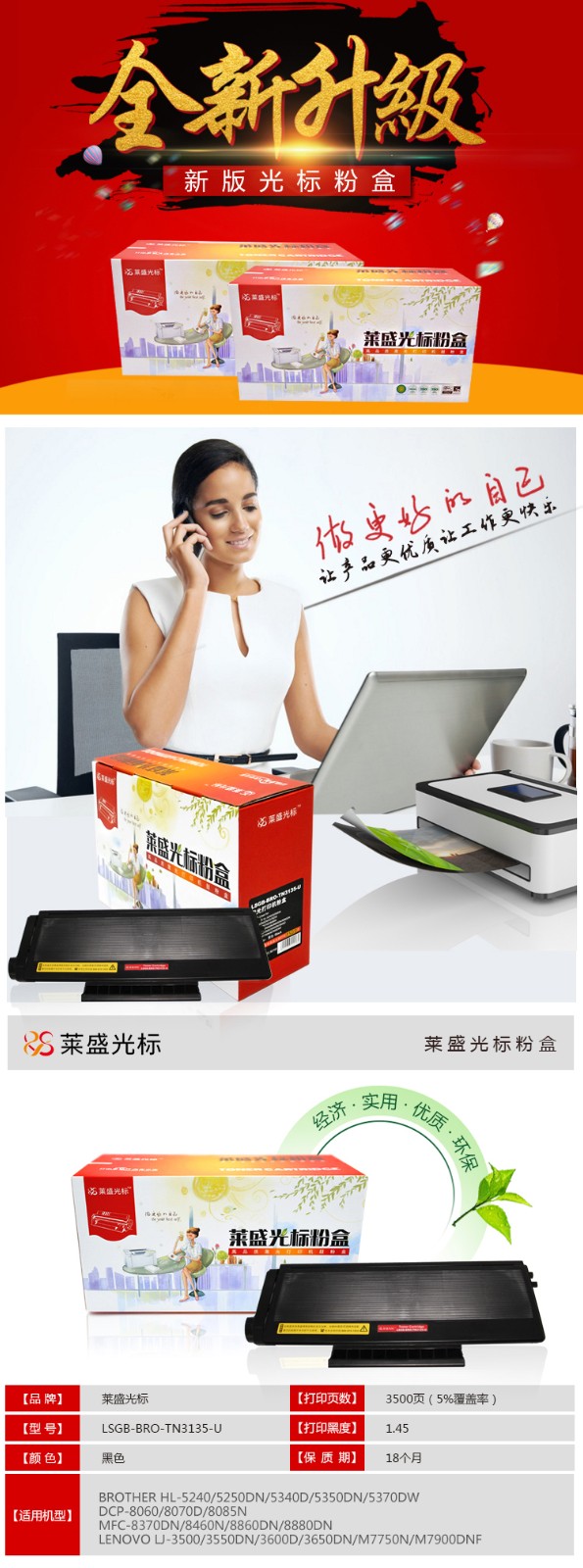 莱盛光标LSGB-BRO-TN3135-U粉盒 兄弟 HL-5240/5250/DCP-8060,MFC-8460/TN3175,Lenovo LJ3500/3600