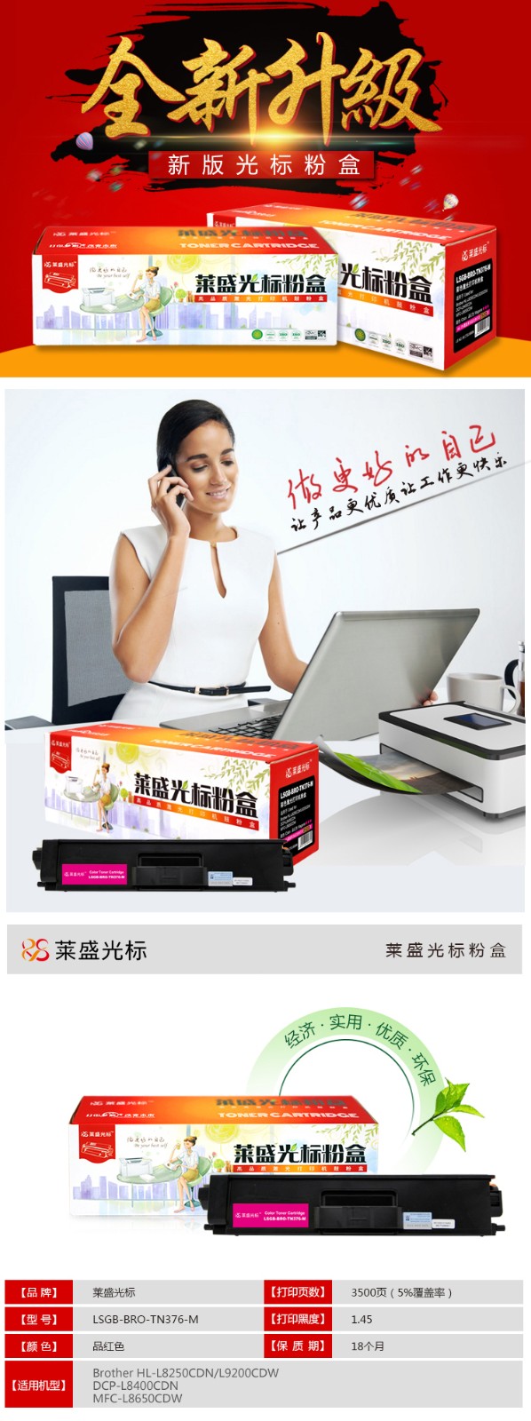 莱盛光标LSGB-BRO-TN376-M 红粉盒 莱盛兄弟 HL-L8250CDN/L9200CDW/DCP-L8400CDN/MFC-L8650CDW