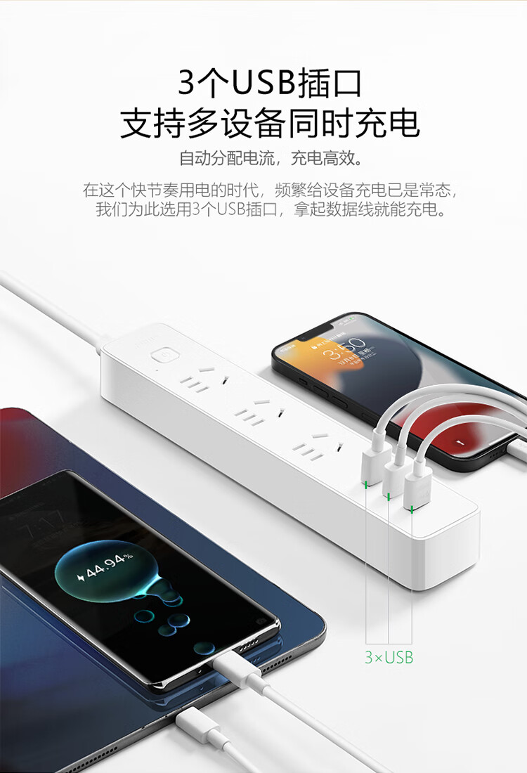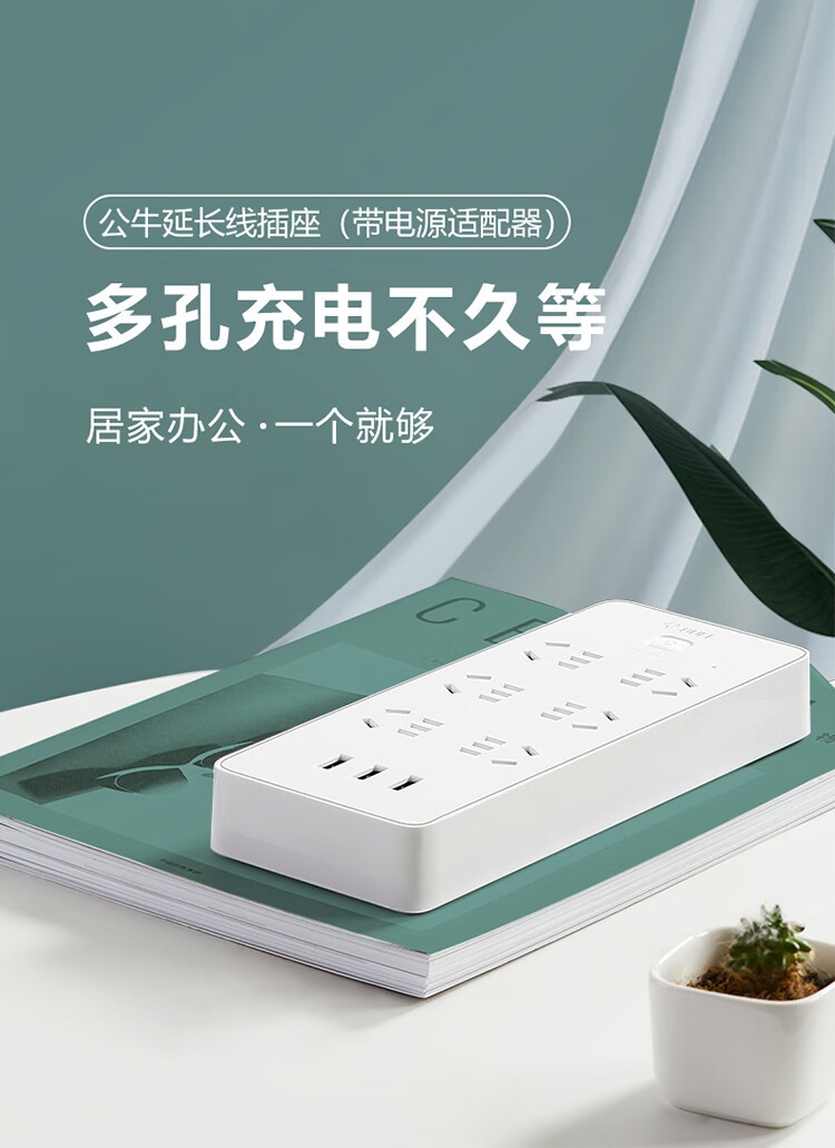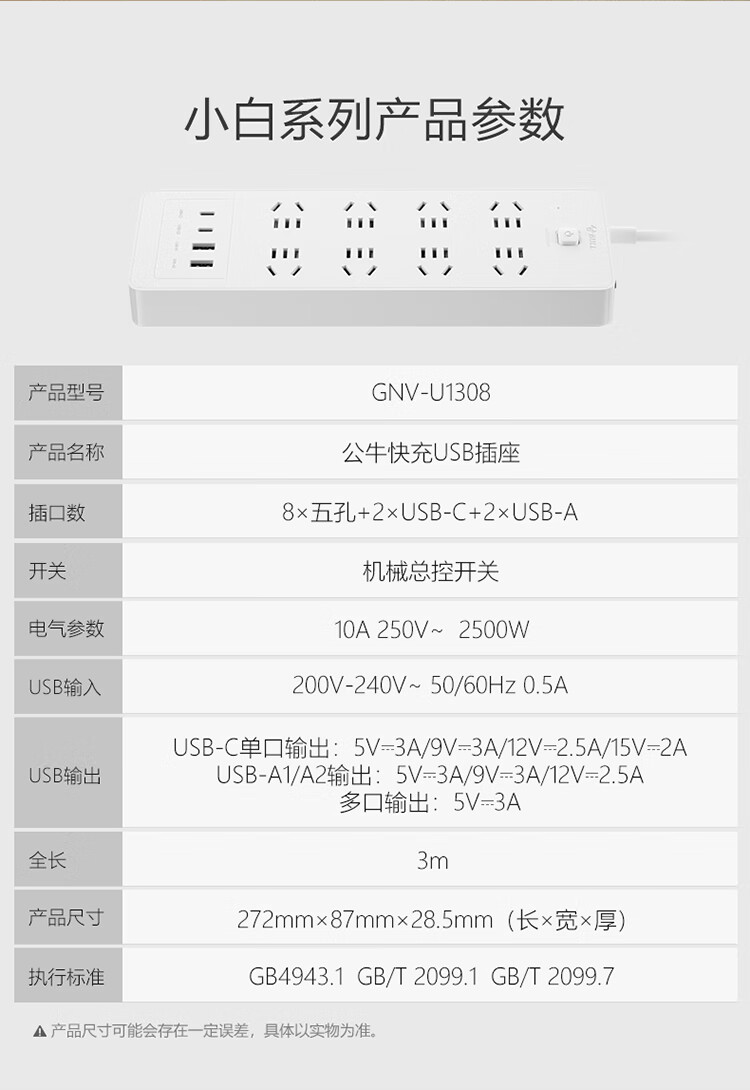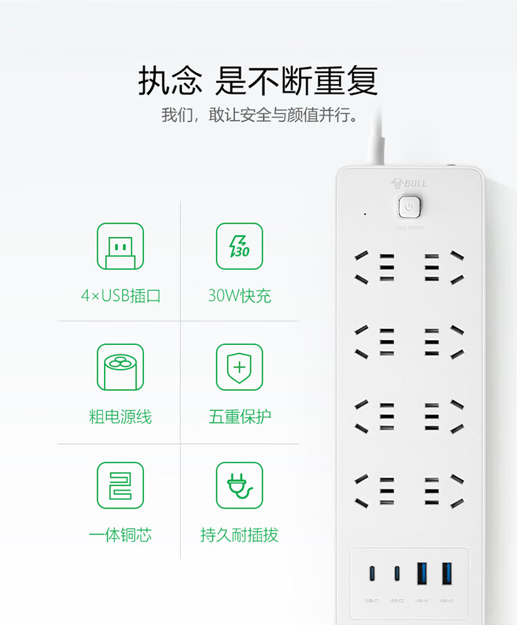 公牛/BULL GNV-UUN158 插座 超功率保护 USB接口 8孔全长5米