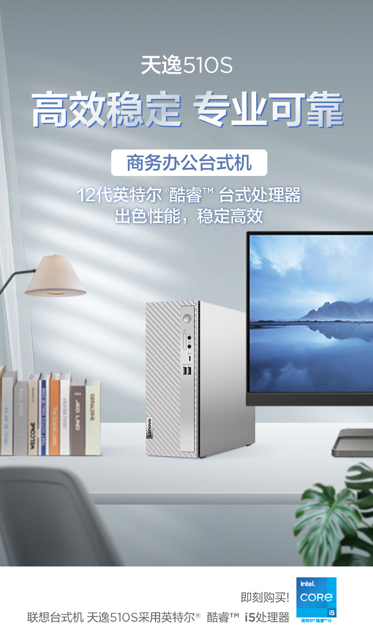 联想/LENOVO 510S 台式计算机 天逸510S英特尔酷睿i5个人商务台式机电脑主机(12代i5-12400 16G 512G SSD win11)23英寸