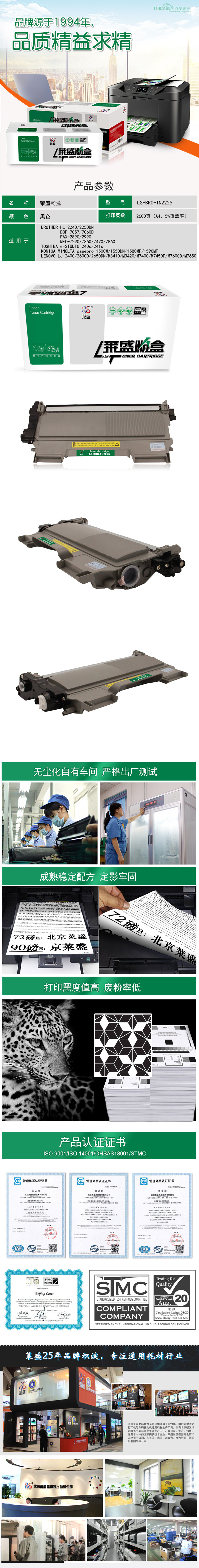 莱盛 LS-BRO-TN2225 粉盒BROTHER HL-2240/2250,FAX2990,MFC-7360/7470/7860,DCP-7060