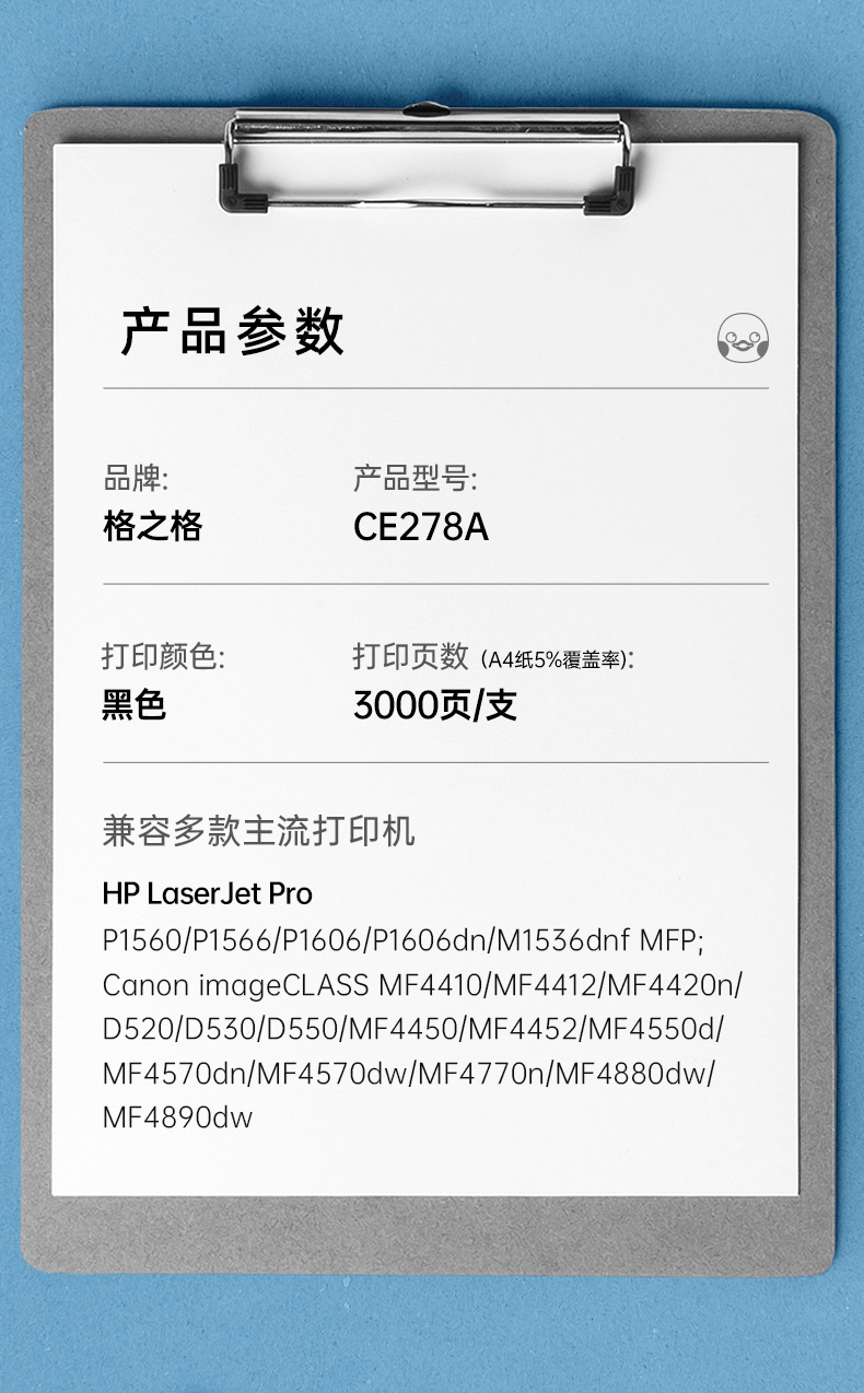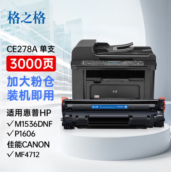 格之格 CE278A 粉盒 适用佳能4712 惠普m1536dnf p1560 p1566 p1606 6230dn MF4752