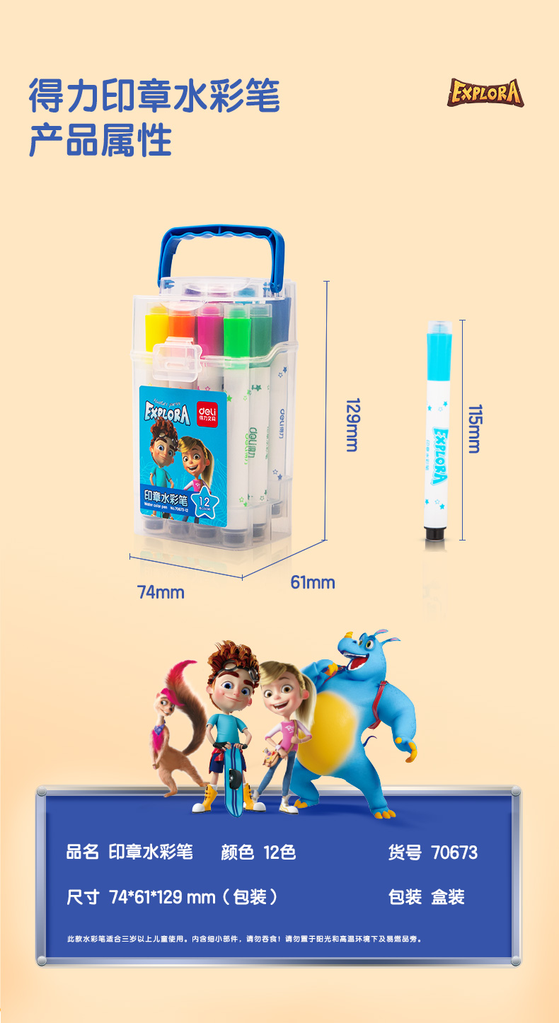 得力 deli 70673 书法绘画用具 水彩笔 儿童涂鸦彩色笔套装宝宝画笔玩具