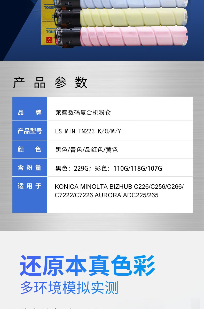 莱盛 LS-MIN-TN223-Y 数码复合机粉仓粉盒 黄色 适用于KONICA MINOLTA Bizhub C226/C256/C266/C7222/C7226