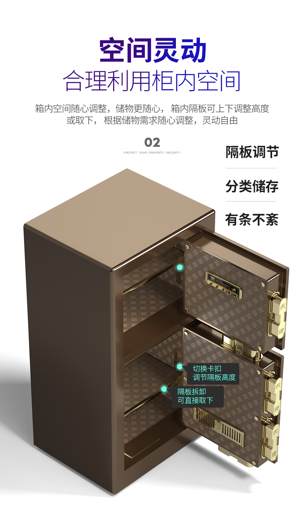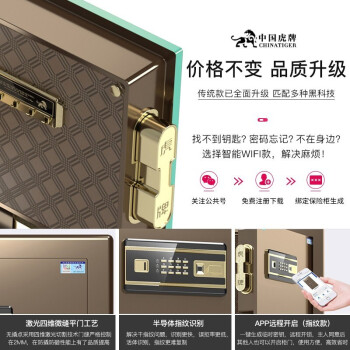 虎牌保险柜家用办公 双门防盗密码/指纹保险箱保管柜 80双门-睿智黑 电子密码