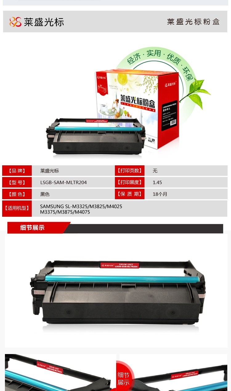 莱盛光标LSGB-SAM-MLTR204 粉盒 莱盛三星SL-M3325/M3825/M4025/M3375/M3875/M4075粉盒