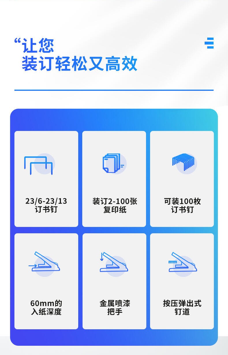 得力订书机大号 财务用加厚重型订书器 办公用厚层大型长臂大码省力型订书机 0486 可订120页