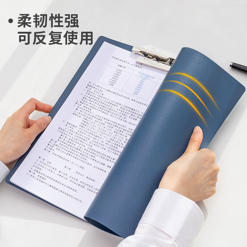 得力/deli 5112 文件夹 高档磨砂款A4金属双强力夹硬文件 深蓝色