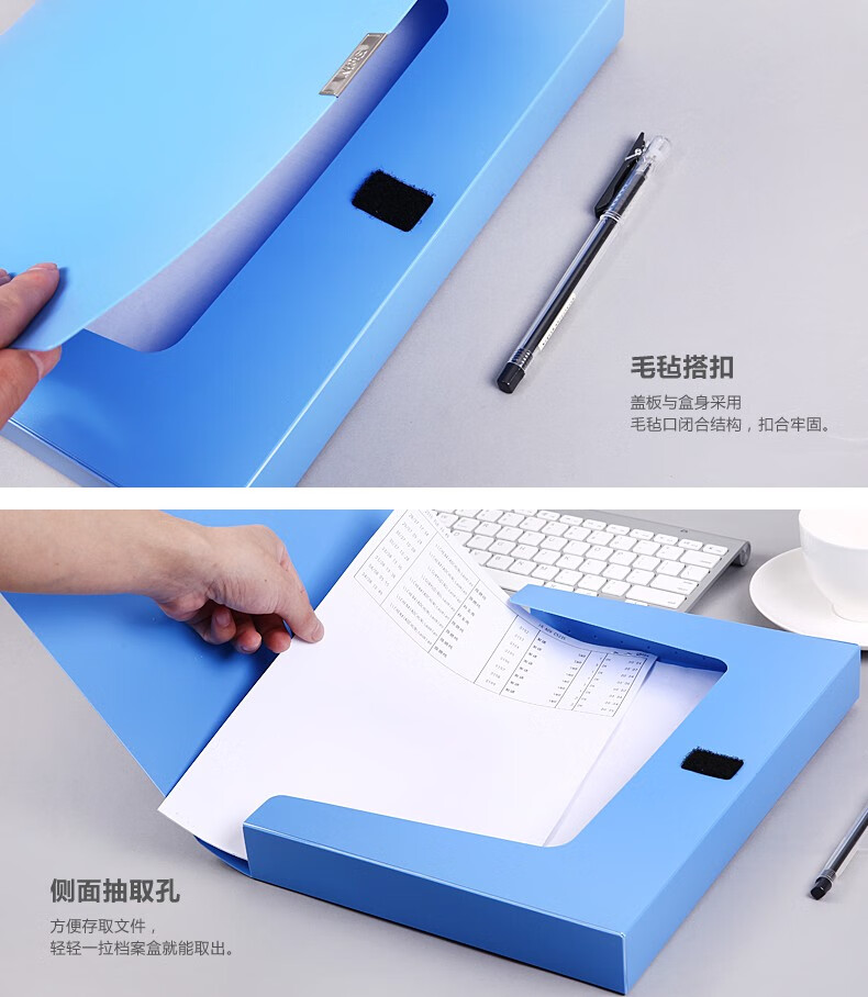 晨光 ADM94814 档案盒 A4/55mm蓝色粘扣PP文件盒 单个装