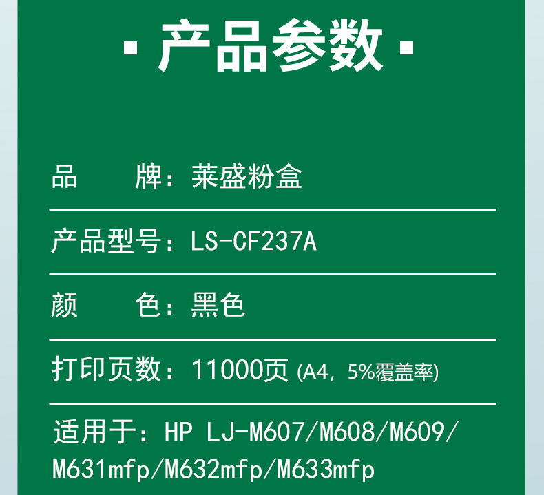 莱盛 LS-CF237A 粉盒 适用于HPLaserJetEnterpriseMFPM631、M632、M633数码复合机/HPLaserJetEnterpriseM607、