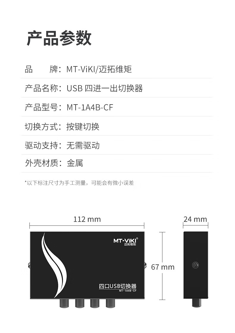 迈拓维矩/MT-VIKI MT-1A2B-CF 集线器 USB打印共享器