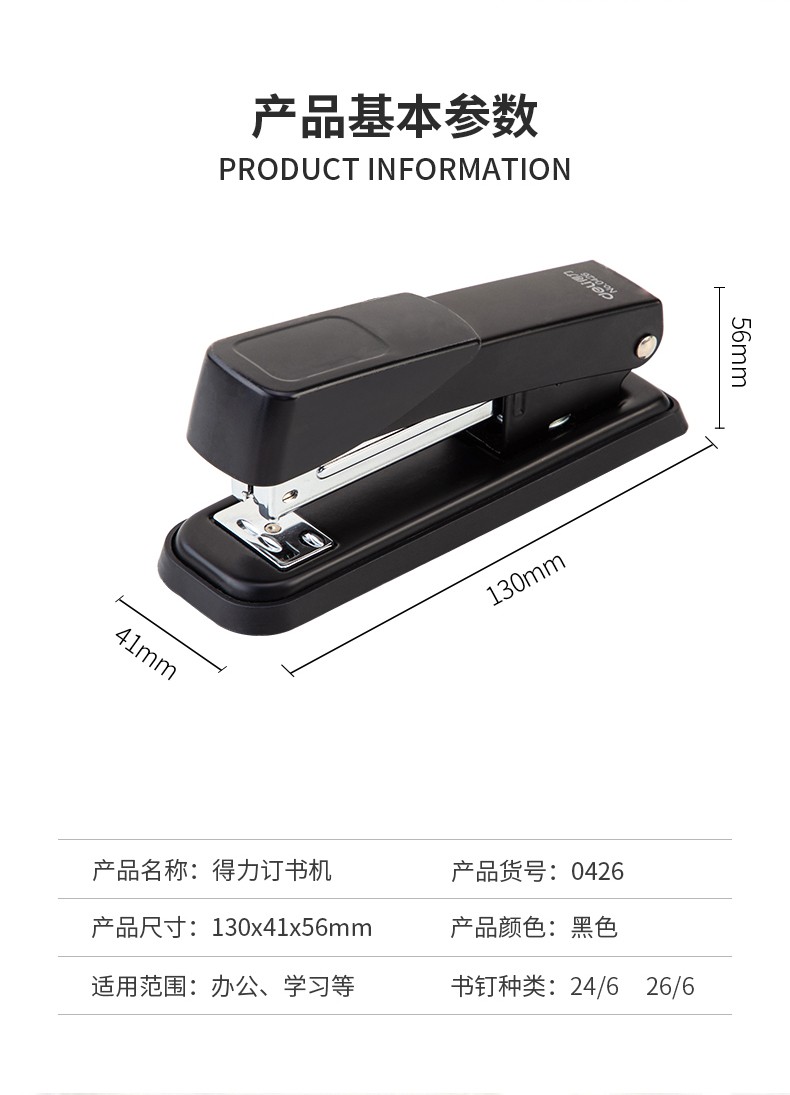 得力(deli)订书机 标准订书机 学生省力订书器 办公用品文具 颜色随机 0414旋转机头订书机 颜色随机