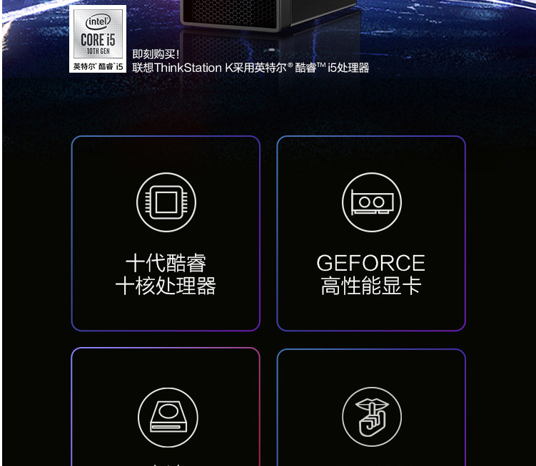 台式计算机 联想THINKSTATIONKi7-10700/16GB/1TB+256G/GTX1660S无光驱/500W电源/USB键鼠/Win10home19.5英寸