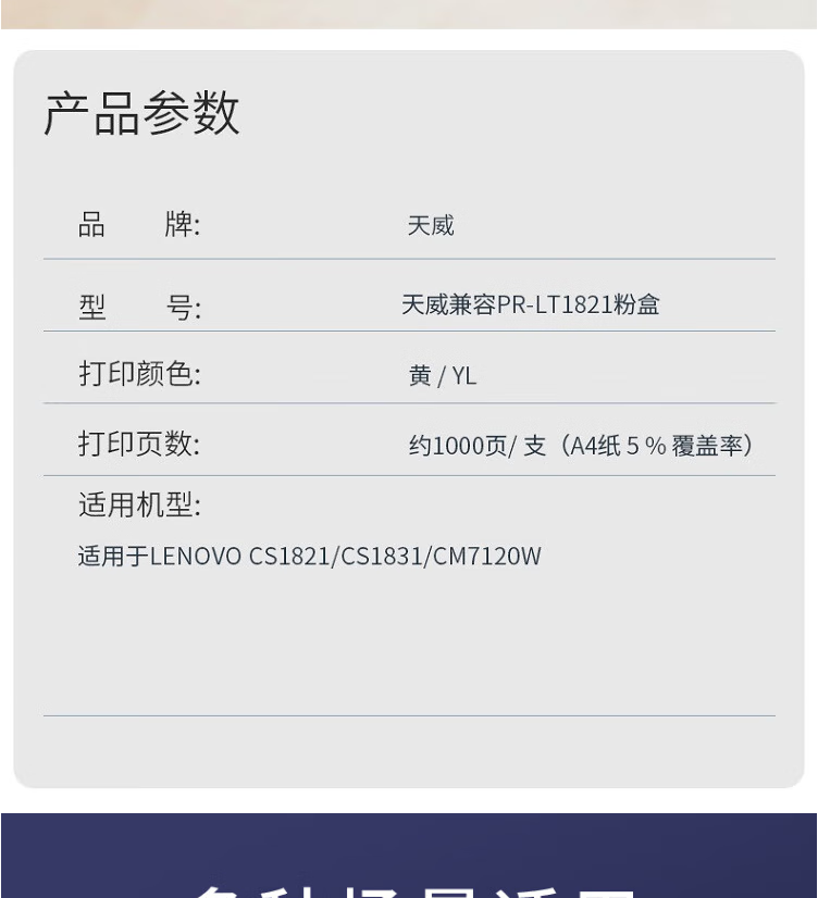 天威/PrintRite LT1821 粉盒 黄色 带芯片 适用于适用联想CS1821 CS1831 CM7120W 1000页