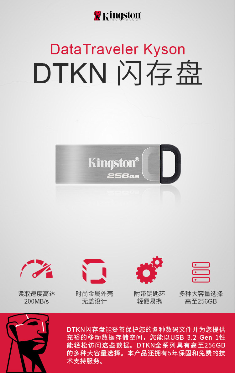 金士顿(Kingston)128GB USB 3.2 Gen 1 U盘/存储卡 DTKN 金属外壳 读速200MB/s金士顿高速U盘 DTKN-128G