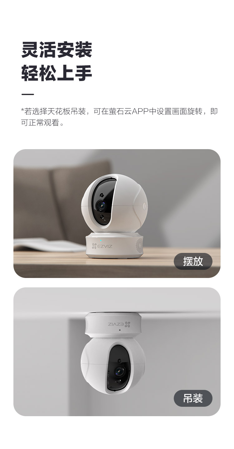 萤石摄像头H6C 1080P智能云台监控摄像机室内家用监控器 无线wifi手机远程双向通话高清莹石 C6CN标准版【200万高清】含64g TF卡一张