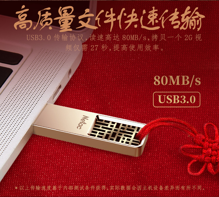 朗科(Netac)16GB USB3.0 U盘 U327 全金属高速迷你镂空设计闪存盘 创意中国风 珍镍色