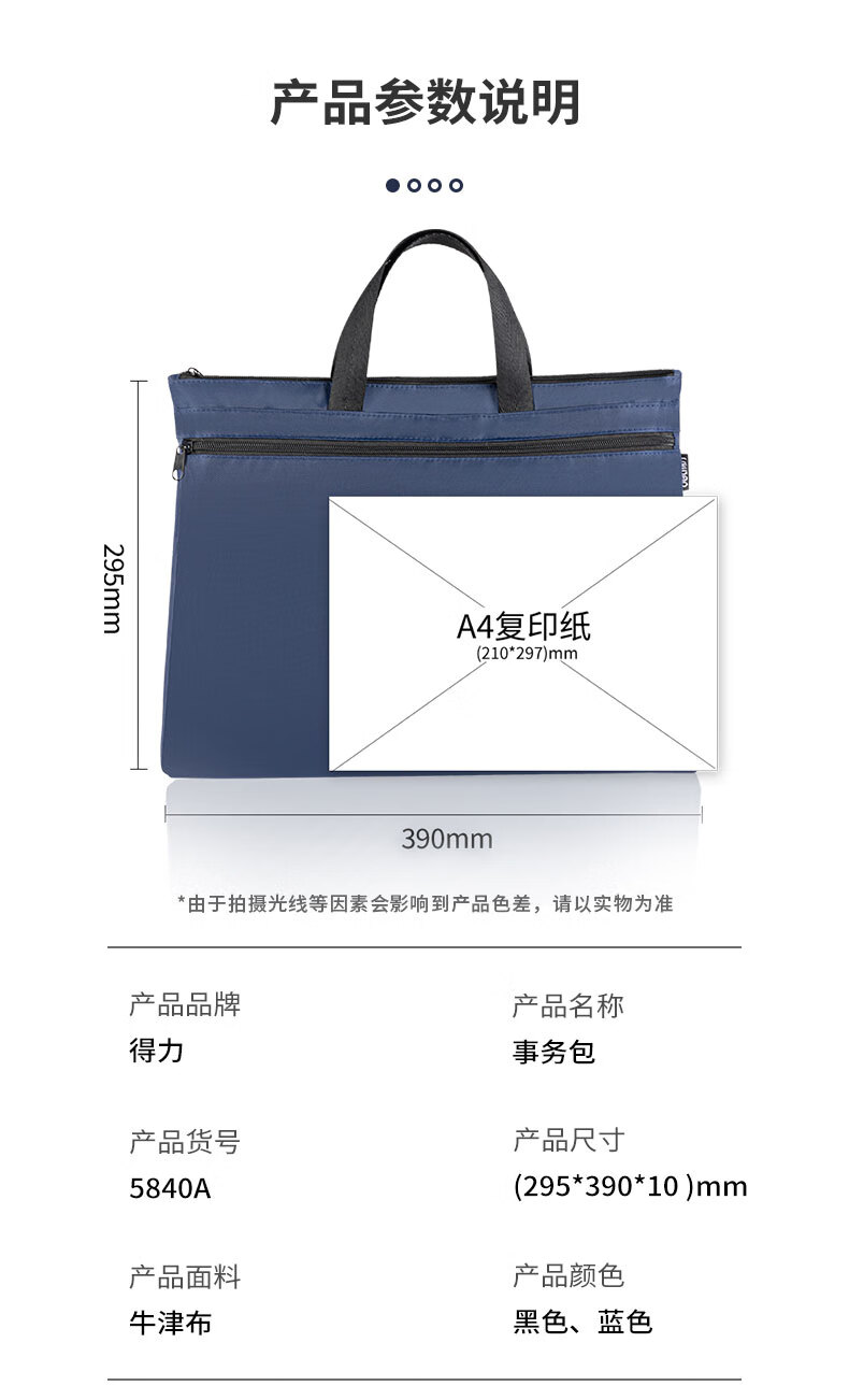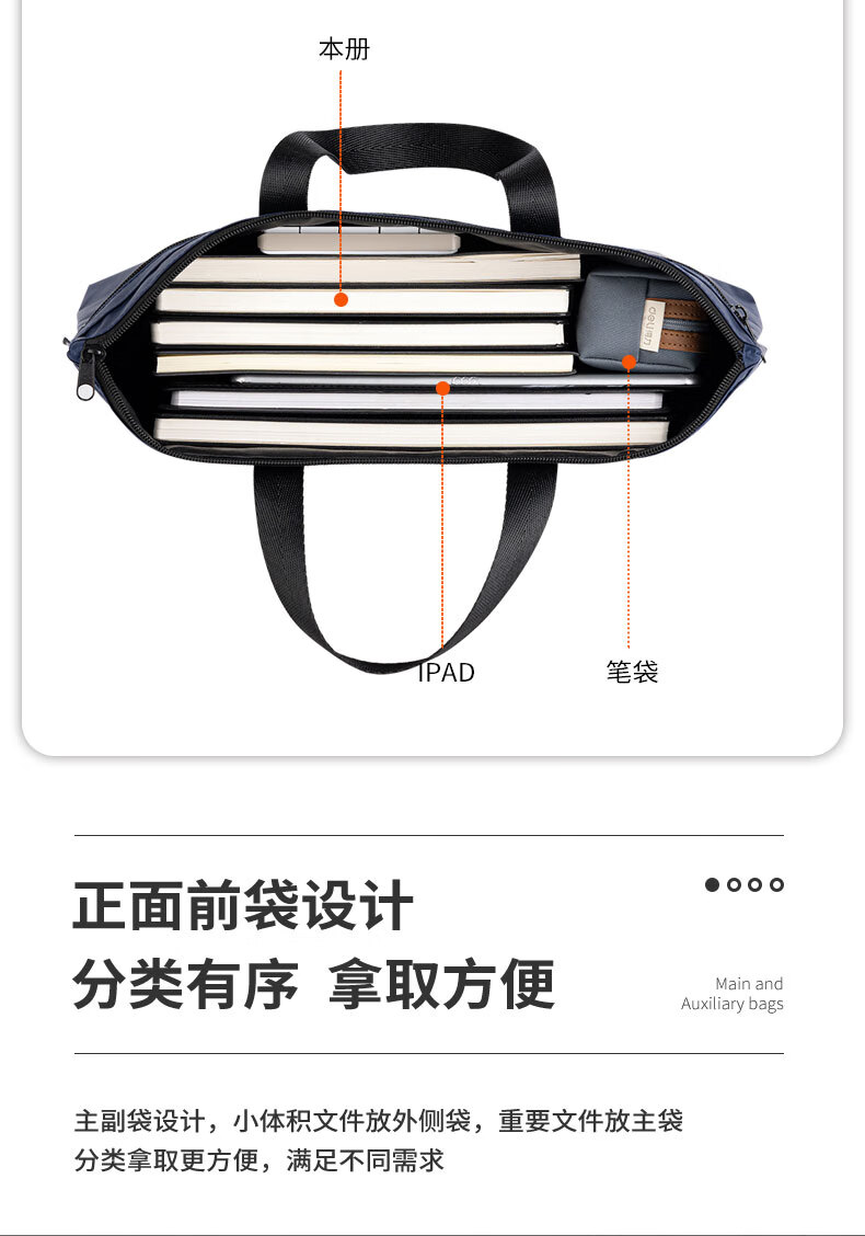 得力/deli P05840A 收纳包 双层事务包/文件包/公文包/拉链袋 手提袋商务会议包 黑色 单位:个