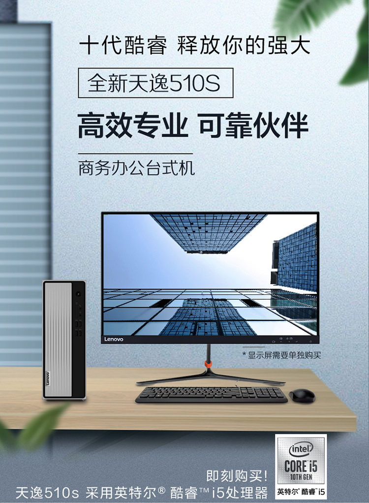 台式计算机 联想 Lenovo 天逸510S 个人商务台式机电脑整机 i5-10400 8G 512G SSD wifi win10 来酷27英寸IPS