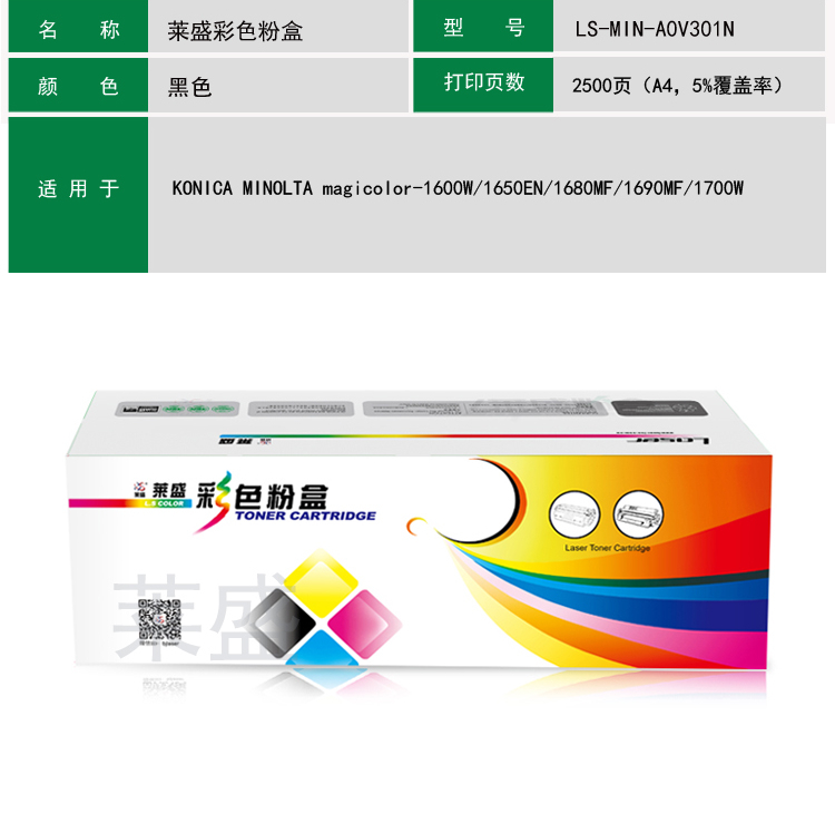 莱盛 LS-MIN-A0V301N 彩色粉盒/硒鼓 黑色 适用于 美能达 KONICA MINOLTA magicolor-1600W/1650EN/1680MF