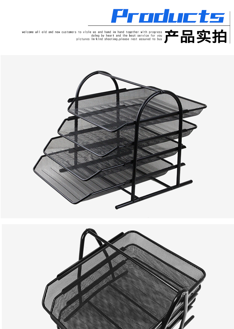 晨光 金属铁网书立文件架 收纳筐办公铁艺三栏四栏文件盘办公用品 三联文件架