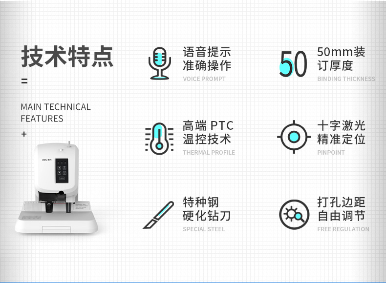 得力(deli)凭证装订机 财务装订机 半自动/全自动打孔机热熔铆管 14608新款自动装订机 可装订35mm