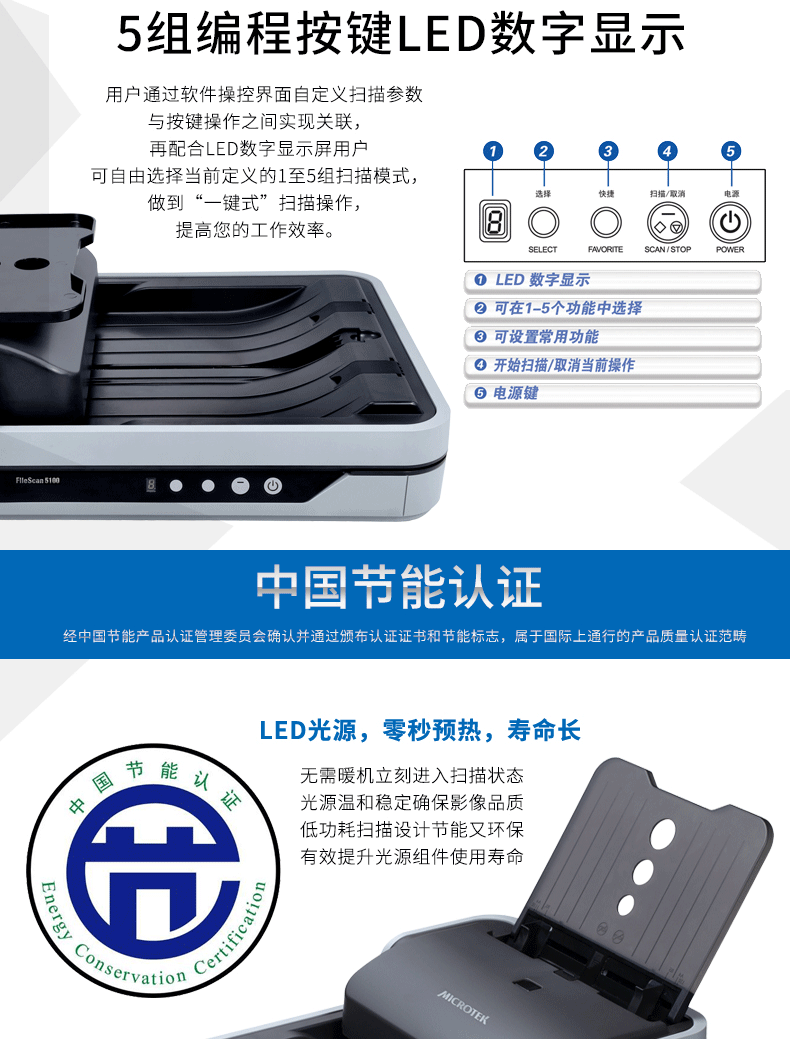 中晶(microtek)FileScan 5100 双平台高速文件档案扫描仪A4 高清双面馈纸扫描仪 35页70面/分钟