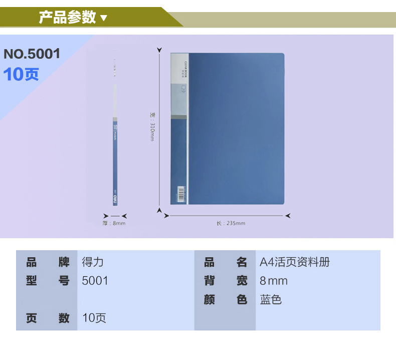 得力(deli)文件夹A4资料册活页文件插页袋 100页 单个装5007