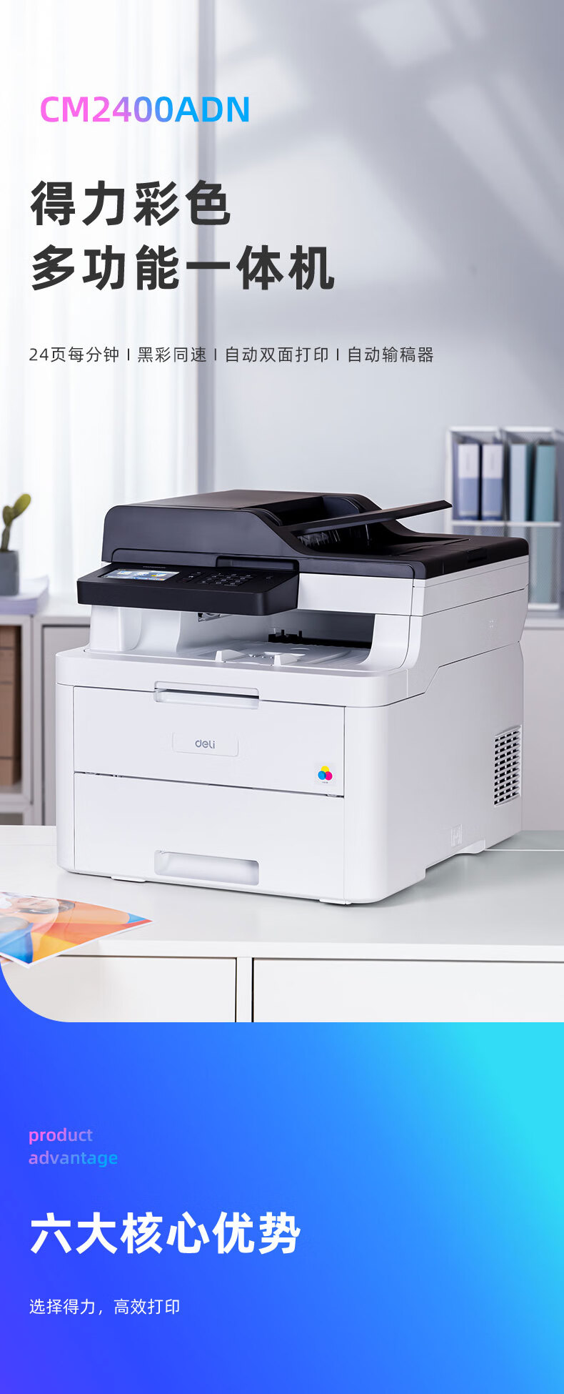 得力 CM2400ADN 彩色激光打印机复印一体机A4打印机自动双面大型多功能办公商用打印 -多功能一体机