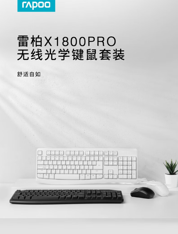 雷柏/RAPOO X1800Pro 键盘 无线键鼠套装商务办公光学鼠标键盘 黑色