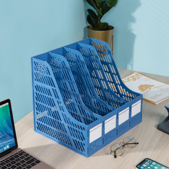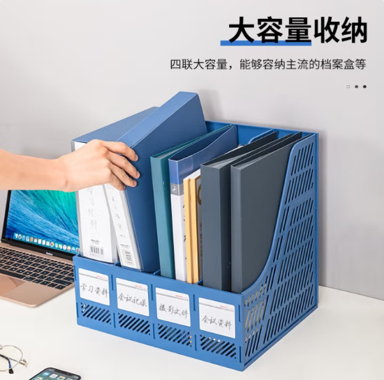 得力 9848 文件筐 4联镂空桌面文件框栏书立架档案收纳盒 办公室带标签资料文件置物架书本资料收纳神器