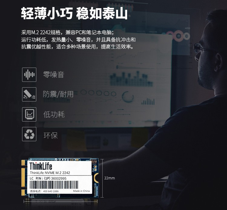 联想/LENOVO 256G 移动硬盘 原装SSD固态硬盘M.2 2242接口 SPEEDUP-C-256